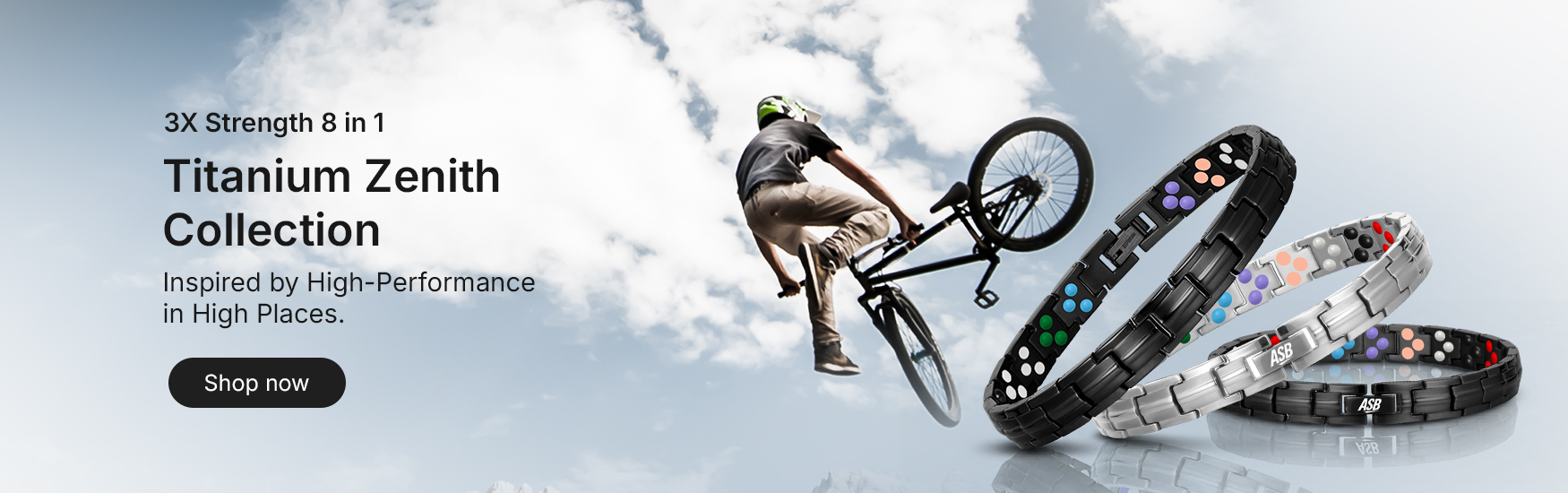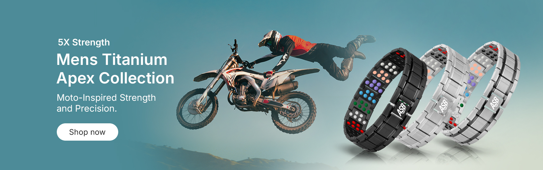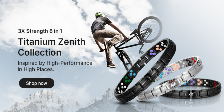 The 5X Strength Apex 8-in-1 Titanium Action Sports Band is our most advanced performance band ever — engineered with five layers of reinforced durability and powered by eight performance elements, including magnets, copper, negative ions, far infrared, and premium mineral stones. Built for elite athletes, extreme riders, and anyone pushing the limits of performance, recovery, and endurance.