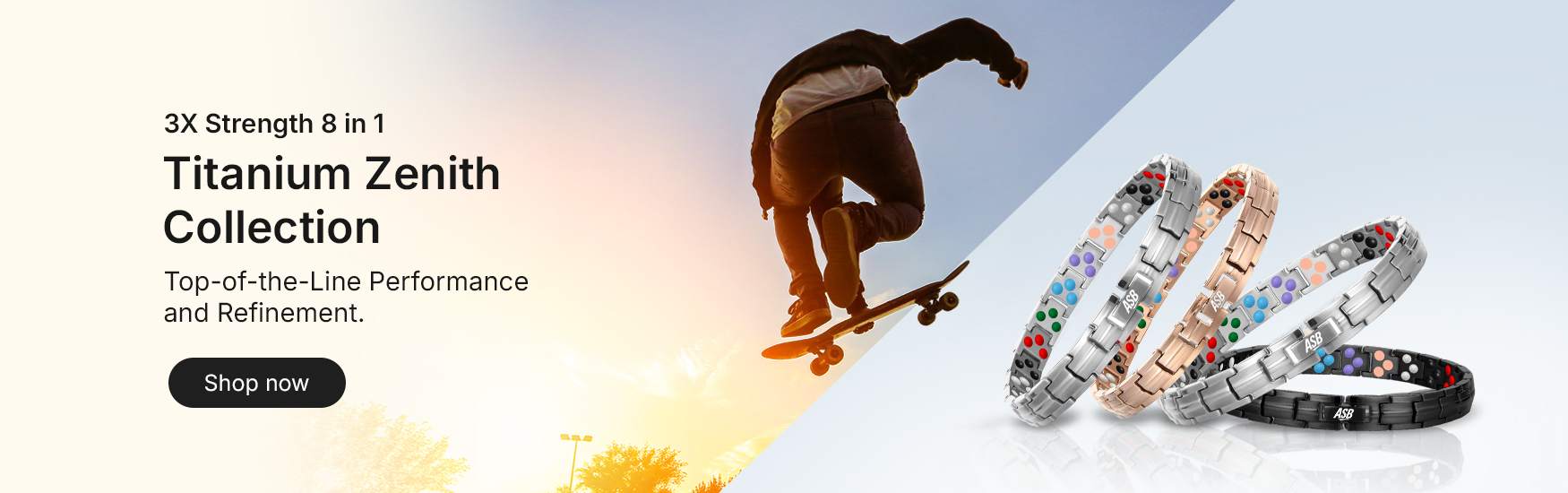 The 3X Strength 8-in-1 Titanium Action Sports Band delivers triple-layer durability packed with eight powerful performance elements — including copper, magnets, negative ions, far infrared, and premium mineral stones. Built for athletes who want more balance, more recovery, and more performance in every moment.